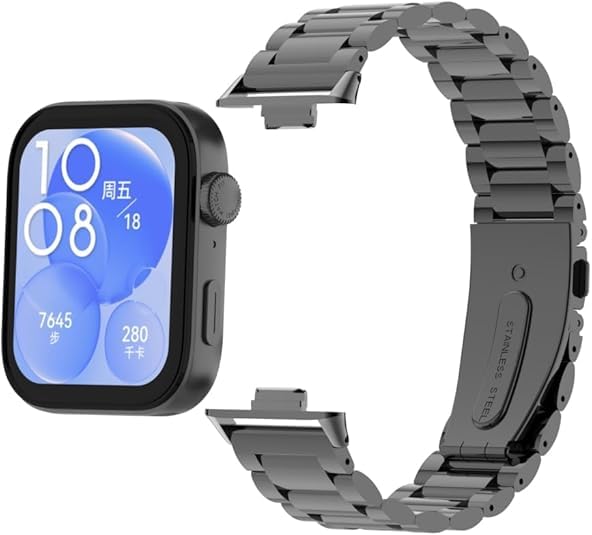 ELMO3EZZ - اساور قابلة للتعديل ومريحة مع ساعة هواوي فيت 3 بهيكل معدني 18 ملم من الموعز بديلة شبكية الستانلس ستيل لساعة اسود للكبار الجنسين