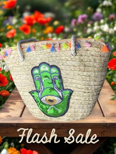 Generic - Straw Bag, Summer Beach Bag, Handwoven Large Women Handbag, Bamboo Shoulder Bag Eye