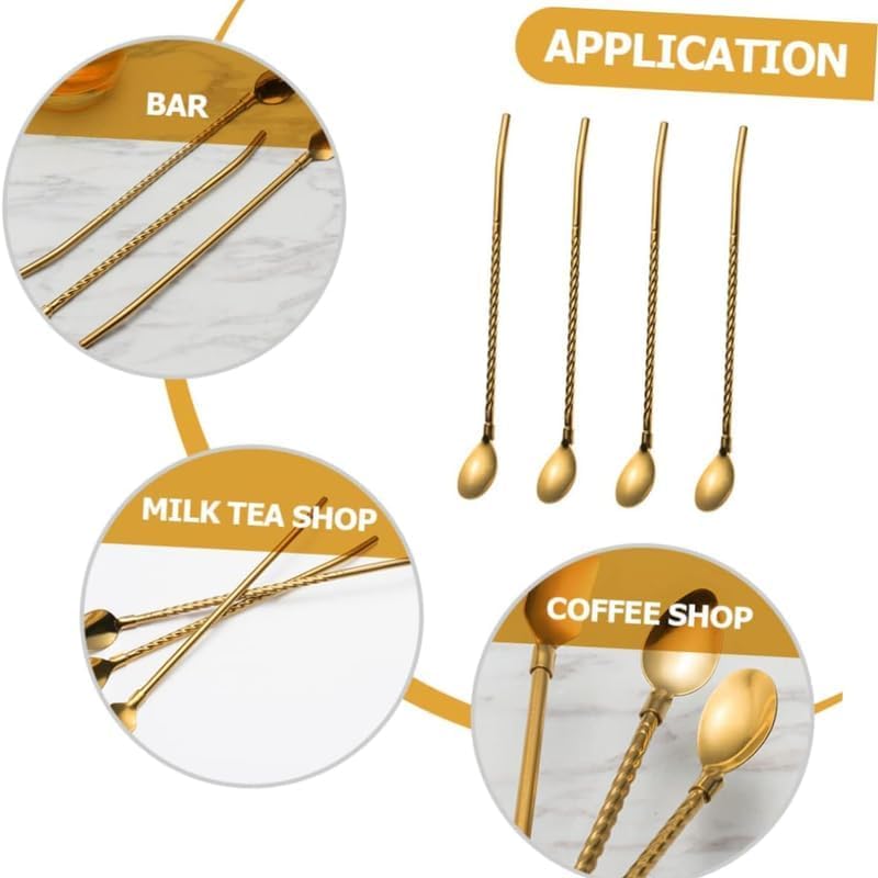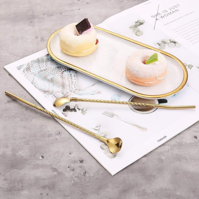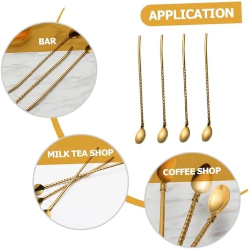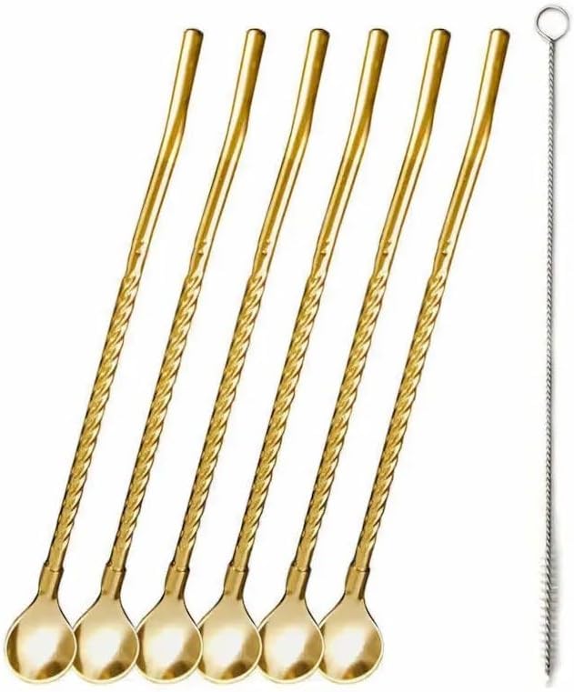 - PREMIUM DESIGN: Long gold-toned metal drinking straws with elegant twisted pattern and matching spoon ends for enhanced drinking experience