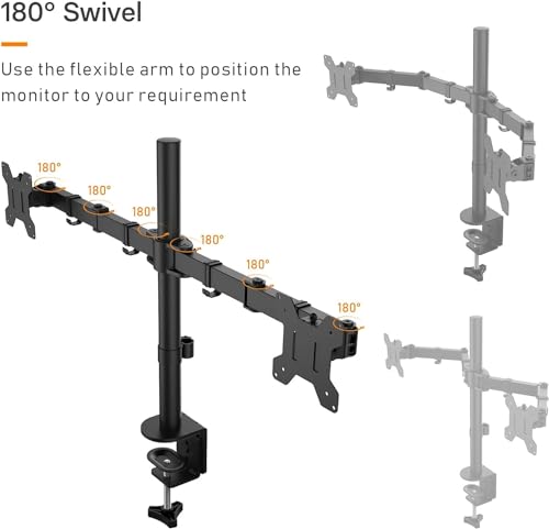 - Wide Compatibility: Strong steel double arm desk mount - mounts two screens side by side to conveniently free up desk space. Holds two 10”-32” TV or monitors with a maximum load capacity of 10 kg/22lbs for each arm.