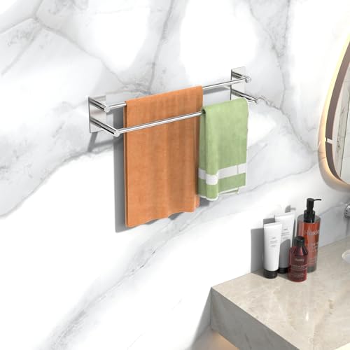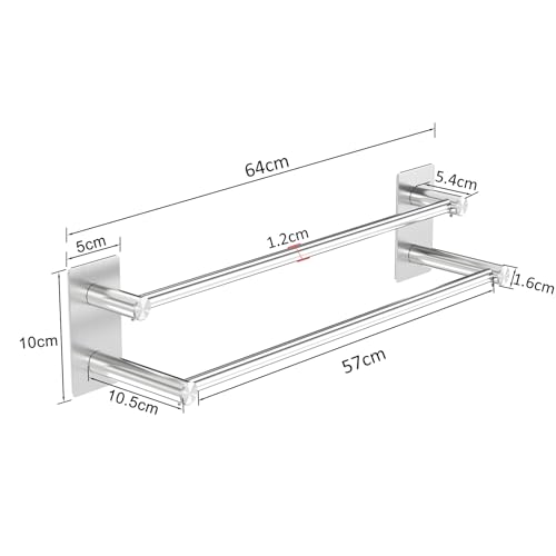 Strength Enemy - حامل مناشف مزدوج لاصق للحمام من الستانلس ستيل المصقول SUS304 يثبت على الحائط بدون ثقب للحمام والمطبخ وغرفة النوم (60 سم، فضي)