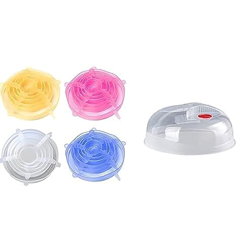 Generic - أغطية مرنة من السيليكون قابلة لإعادة الاستخدام، لتغطية أواني الطعام والحفاظ على الطعام طازجًا، مناسبة للأوعية بأحجامها المختلفة + غطاء ميكرويف من الوطنية، عبوة من 6 قطع، شفاف
