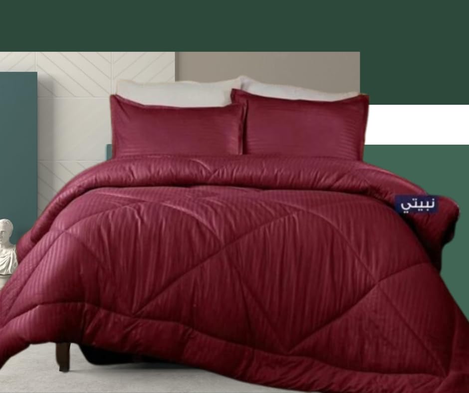 Generic - Stripe Cotton Comforter - Soft Striped Comforter Set - Modern and Elegant Design for Your Room - Chic - Cozy - Soft Winter | Size 180x240 with 2 Pillow Shams - Maroon