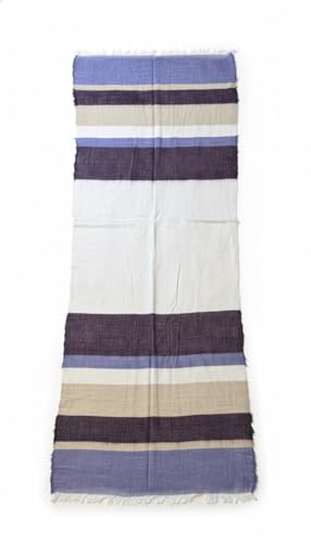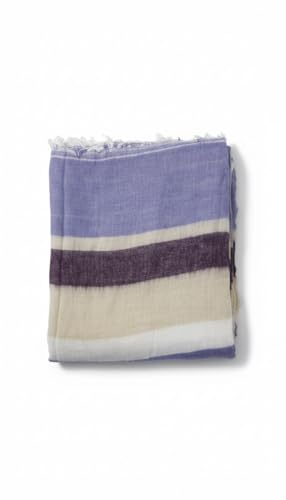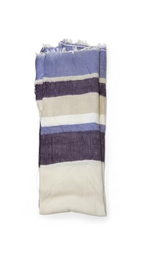 Generic - Striped Cotton Scarf, Lightweight Summer Wrap with Navy Blue, White and Beige Color Block Pattern, Frayed Edge Design