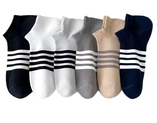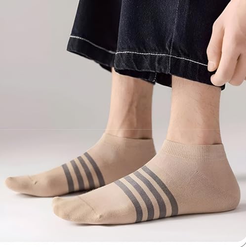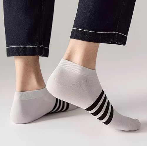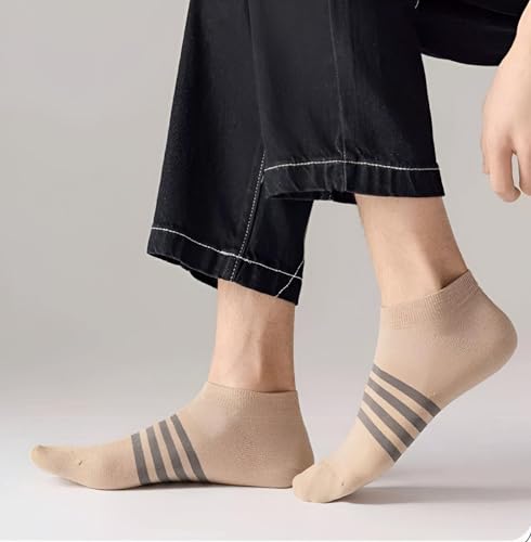 Generic - جوارب بيرفورمانس مخططة - قصة منخفضة تناسب الكاحل بخمسة الوان (اسود، ابيض، رمادي، بيج، كحلي) 12 زوجًا