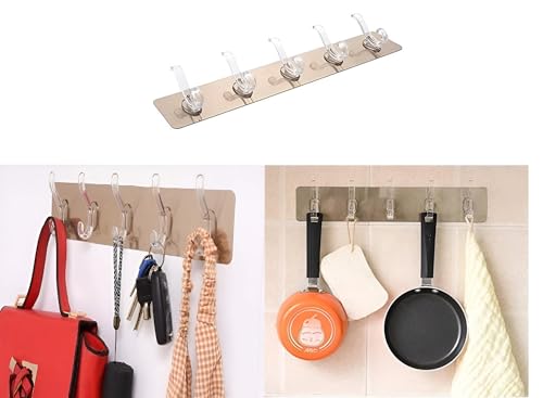 Generic - Strong Adhesive Hook No Hole Wall Mounted Kitchen Bathroom Towel Hook (5 Hooks, 44 x 8 cm, Multiple Colors Available) (1 Piece), White, Plastic Material