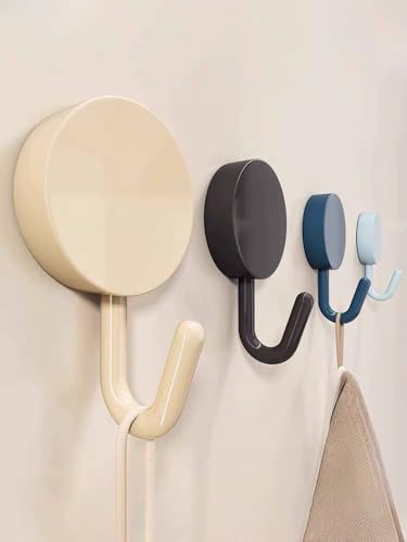 - These are double wall hooks that come in multiple colors and display a decorative circular pattern, crafted from plastic, and sold as a pack of 10 pieces, delivering a cohesive, stylish solution for hanging items across rooms while preserving wall aesthetics, ease of coordination, and a cheerful touch to everyday organization.