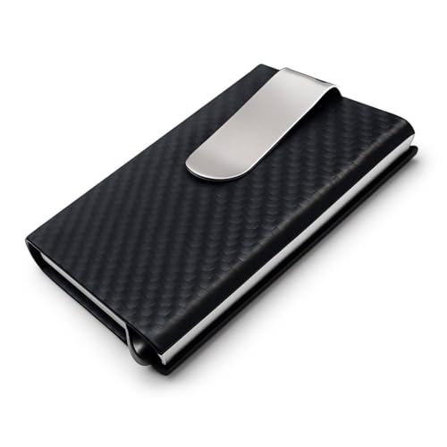 - SLIM DESIGN: Minimalist black wallet with carbon fiber texture pattern offers a sleek, modern look while maintaining a compact profile