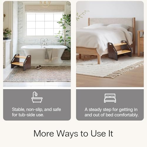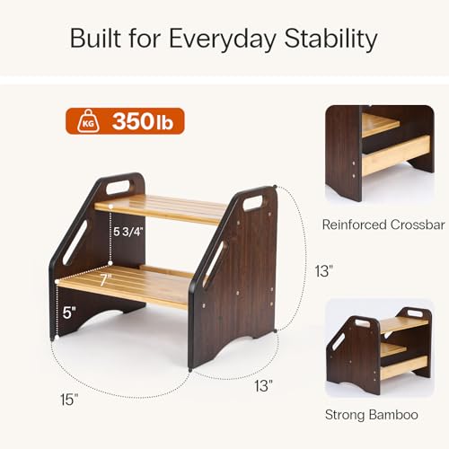 - Heavy-Duty Bamboo Construction – Crafted from 100% natural bamboo, this 2-step stool supports up to 350 lb, delivering long-lasting strength and stability for both kids and adults.