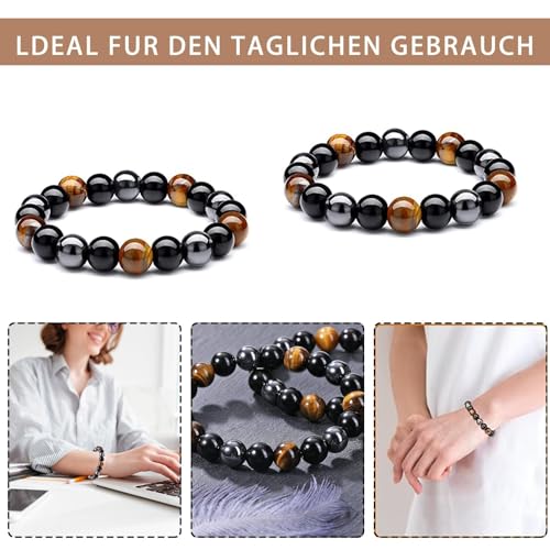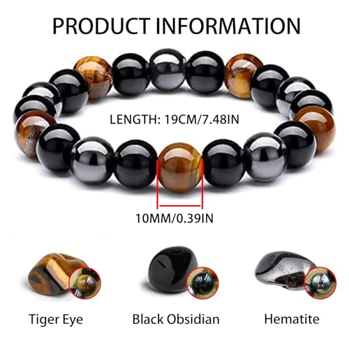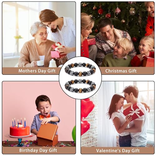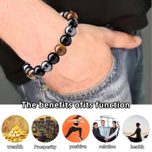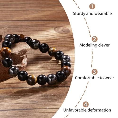 strrng - 2 Pieces Tigers Eye Bracelet,Tiger Eye Bracelet Men,Suitable for Daily Wear,Business Matching,Energy Balance,Gift Collection and Other Scenarios, Unisex, Stone, No Gemstone
