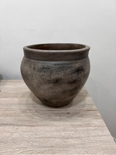 - VINTAGE DESIGN: Handcrafted round planter pot featuring a distinctive grey finish with rustic, weathered texture for an authentic vintage aesthetic