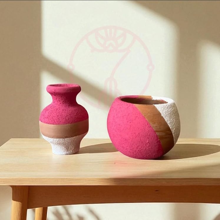 - MODERN DESIGN: Contemporary vase set featuring a striking combination of pink and natural clay tones with a unique ribbon-like aesthetic