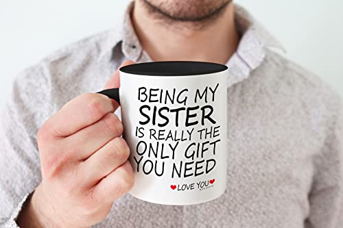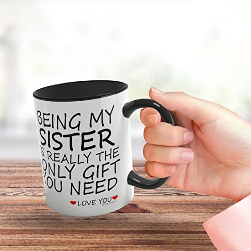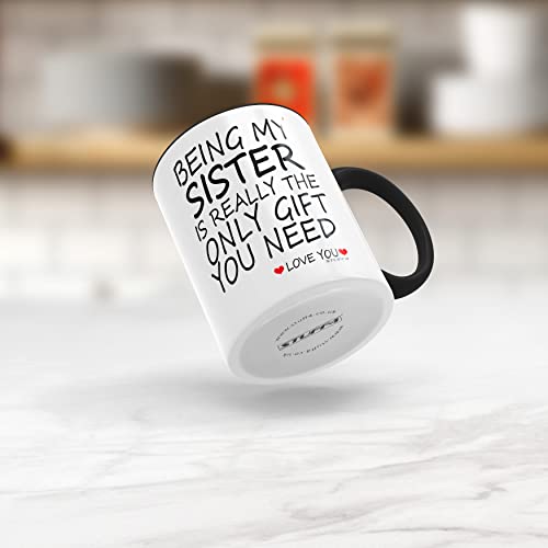 - MAKE HER SMILE: If you are looking for the perfect Birthday Gift for your Sister then look no further. This exceptional quality mug bears the wording - Being My Sister Really Is Really The Only Gift You Need - Love You. Use for all occasions such as Birthdays, Christmas or at any point to show your appreciation.