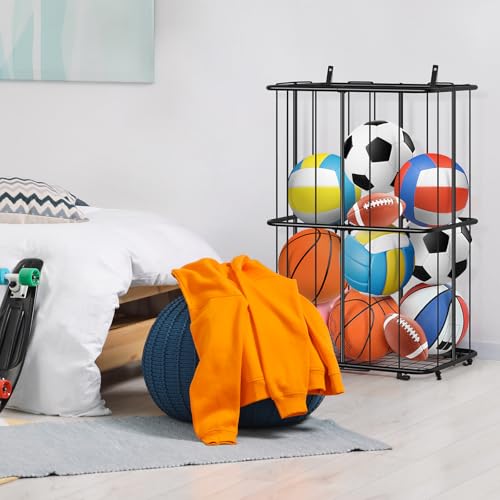 - 【تخزين متعدد الأغراض】: أكثر من مجرد منظم لتخزين الألعاب! التصميم البسيط والمدمج يجعل بيت الدمى الخاص بنا لا يستخدم فقط كحامل تخزين ألعاب للحيوانات المحشوة للأطفال، ولكن أيضًا كمنظم تخزين لكرة السلة لأنواع مختلفة من كرات التمرين، مما يحافظ على العناصر منظمة بشكل جيد.