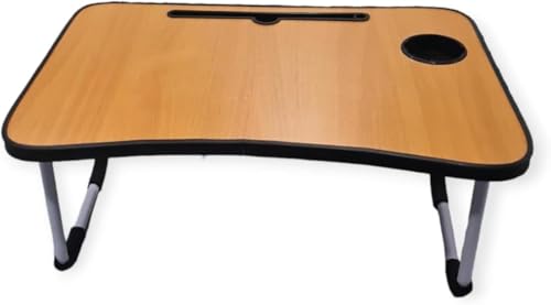 Generic - Sturdy Metal Wood Folding Table - For Multiple Use On Bed Or Office - With Cup And Mobile Places - Size 60x40x28cm