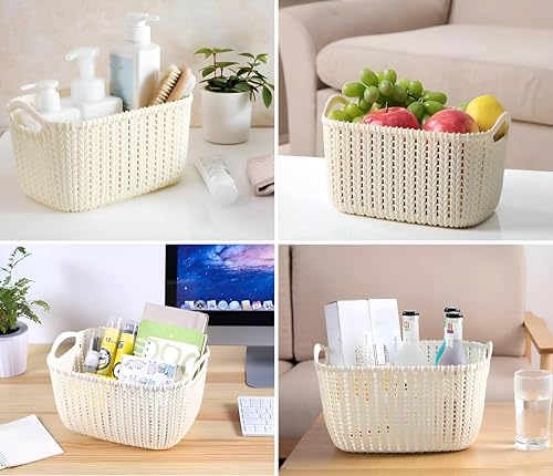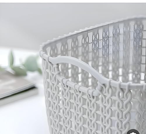 - Versatile woven-style plastic storage basket suitable for every corner of the house; helps organize accessories, bathroom essentials, kitchen tools, or clothes while maintaining a neat, elegant look.