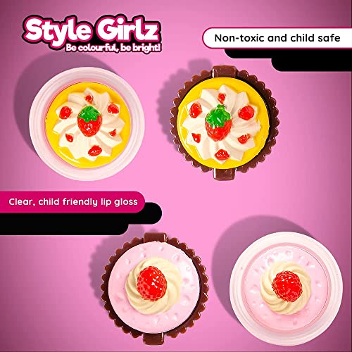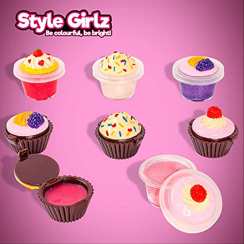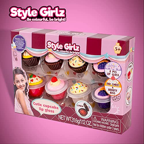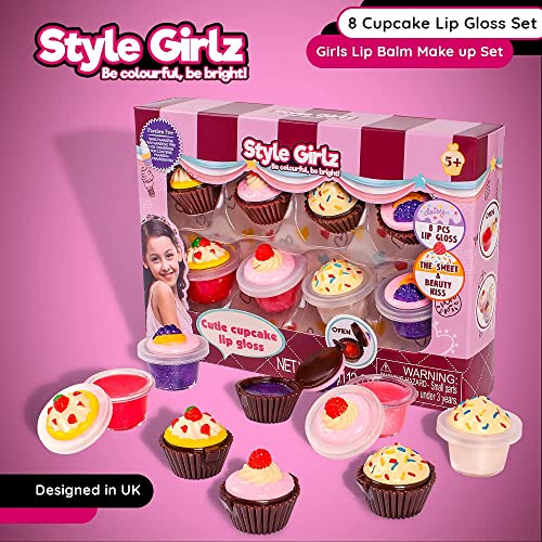 S&Li Cosmetics - مرطب شفاه للأطفال من ستايل جيرلز كوزماتيكس - مجموعة مرطبات شفاه للبنات من 8 قطع على شكل كب كيك