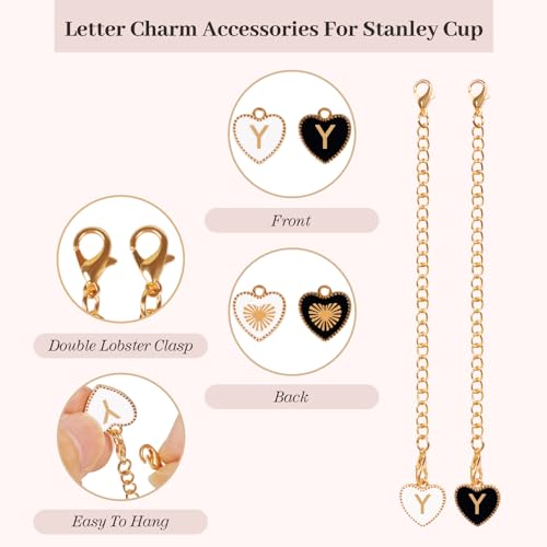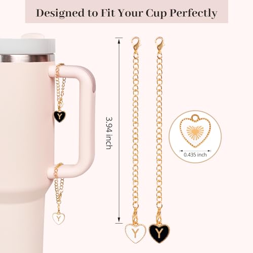 StyleBoon - Letter Charm Accessories for Stanley Cup,2Pcs Heart Shape Name ID Personalized Identification Charms Letter Handle Charm for Stanley Cup Accessories