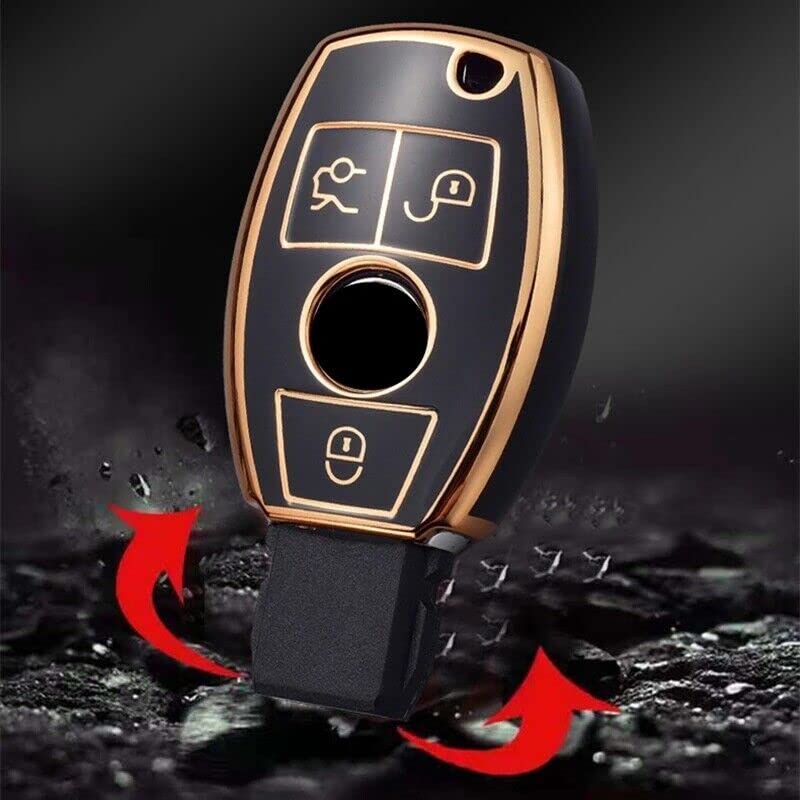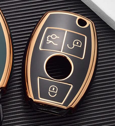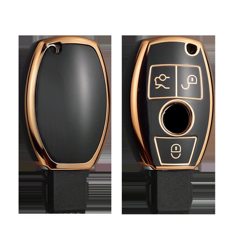 StyleC - StyleC smart key fob compatible with MERCEDES BENZ 3 BUTTON SLK CLK S SL ML key protector (Black-Gold)