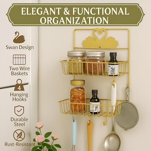 - يوفر الحامل الذهبي المعدني مزدوج الطبقات تنظيمًا متعدد الاستخدامات للمطابخ والحمامات، مما يجعل من السهل الحفاظ على الضروريات مثل البرطمانات والزجاجات ومنتجات الاستحمام والأدوات الشخصية مرتبة بدقة بطريقة أنيقة تعزز أي مساحة.