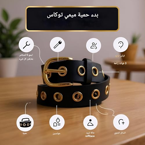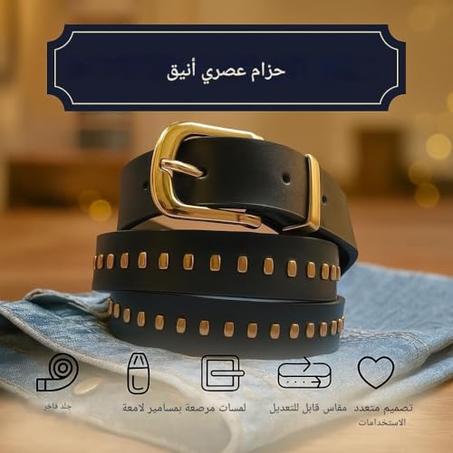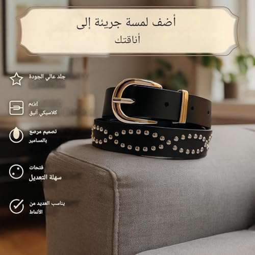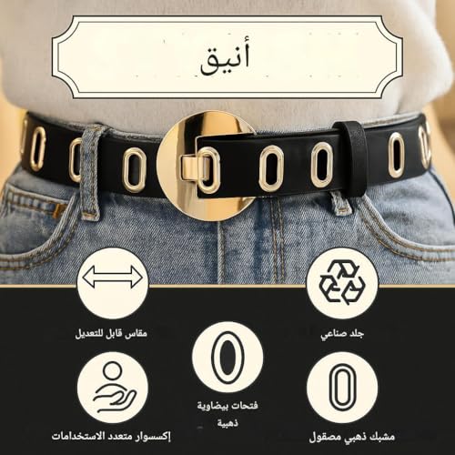 Generic - Stylish Belt - Edgy Faux Leather with Gold Grommets, Adjustable Size, Round Metal Studs, Buckle Closure for Trendy Casual Accessories
