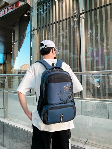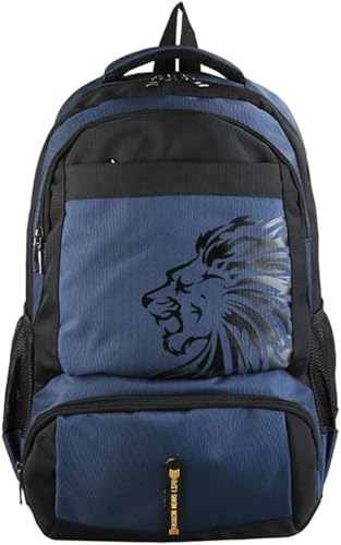 Generic - شنطة ظهر انيقة سوداء بطباعة اسد - سعة كبيرة، متينة ومثالية للسفر والعمل والمدرسة - 506 - ازرق