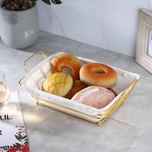 Generic - حامل خبز أنيق - سلة معدنية بتصميم مستطيل مع بطانة قماشية لتقديم الخبز واللفائف والوجبات الخفيفة بلمسة نهائية ذهبية/ كريمية