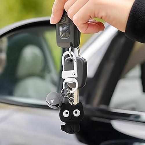 fashion mania - Stylish Cat Pendant Keychain - Black Kitten Charm Key Ring for Keys, Handbags and Backpacks