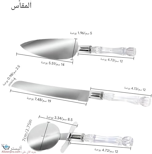 - مثالية لحفلات الزفاف وأعياد الميلاد والذكرى السنوية والخطوبة، تضيف مجموعة الكعك هذه الرقي إلى أي احتفال. بفضل اللمسة النهائية الفضية الأنيقة وقبضتها المريحة التي يوفرها المقبض الكريستالي، تكمل هذه المجموعة بسلاسة أي إعداد للطاولة، مما يجعلها ضرورية لأي مناسبة خاصة.