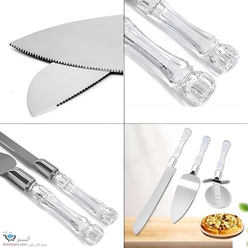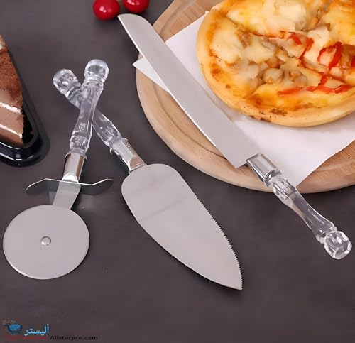 Generic - تقديم حلوى أنيق - ارتقِ بتقديم الحلوى الخاصة بك مع هذه المجموعة الأنيقة المكونة من ثلاث قطع، والتي تتميز بشفرات حادة من الستانلس ستيل ومقابض أكريليك أنيقة لتجربة طعام أنيقة.