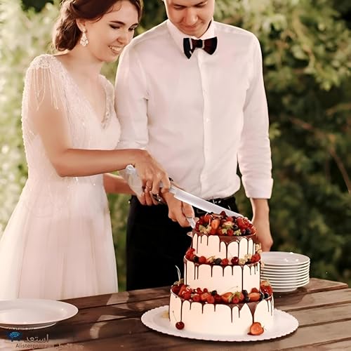 - تم تصميم المجموعة خصيصًا للحصول على الأداء الأمثل، حيث يبلغ قياس سكين الكيك 33.5 × 1 انش وصينية تقديم الكيك بمقاس 27.8 × 2.05 انش. توفر هذه الأبعاد التعامل المريح وسهولة الاستخدام، مما يضمن تقديم الكعك الكبير أو الرقيق دون عناء.
