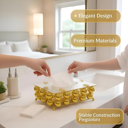 Generic - Stylish Jewelry-Inspired Tissue Box - Decorative Crystal Cover for Bathroom and Living Areas, Combines Functionality with a Glamorous Appeal (Gold)