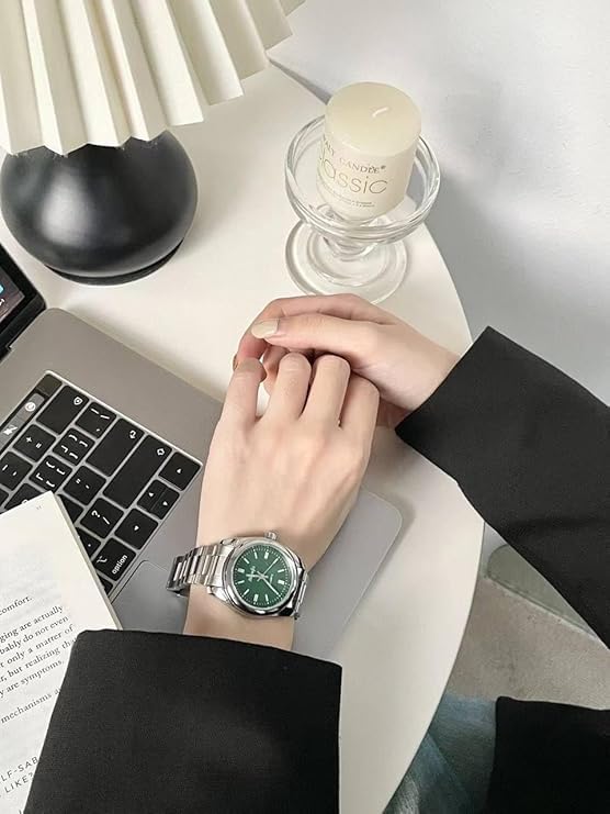 Generic - ساعة انالوج انيقة للرجال - سوار من الستانلس ستيل - ساعة كلاسيكية ومتينة للازياء اليومية (اخضر للرجال)