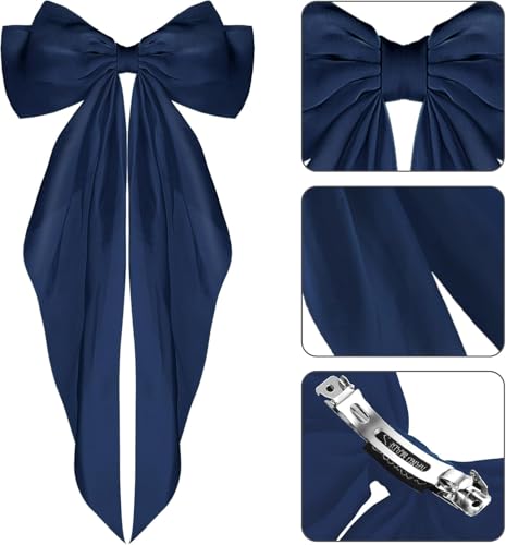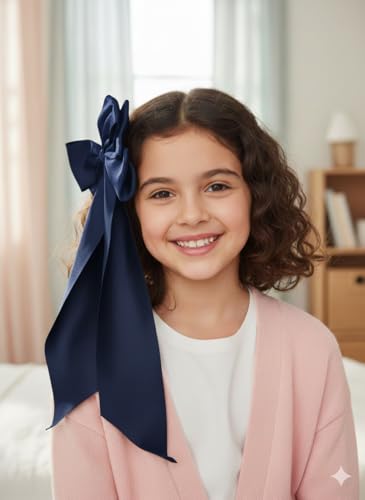 Generic - Stylish Multicolor Big Bow Hair Bow – Fixed Hair Clip for Girls – Soft Design with High Quality Material – Daily Use and Occasions – Strong Hold Without Pulling or Damage to Hair (Navy)