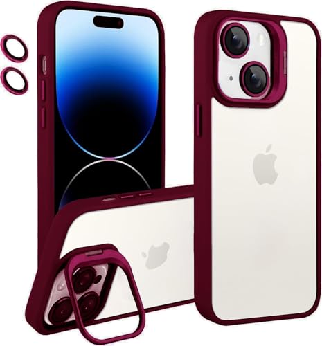Generic - Stylish Phone Case with Silicone Edges, TPU Back, Built-in Kickstand and Camera Lens Protectors Compatible With Iphone 14 (Burgundy)