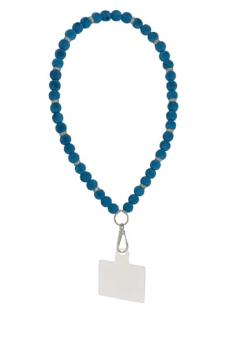 Generic - Stylish Silicone Phone Chain, Blue Beads with Metal Spacers, Phone Holder Compatible with All Mobile Phones, Strong Metal Clip