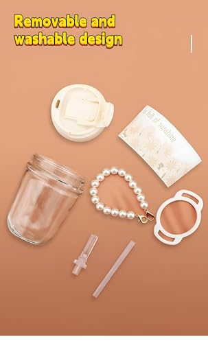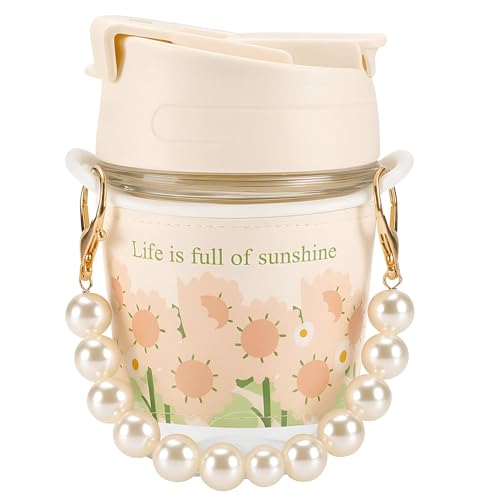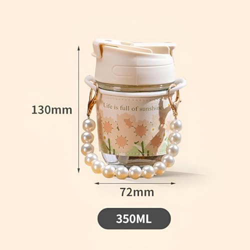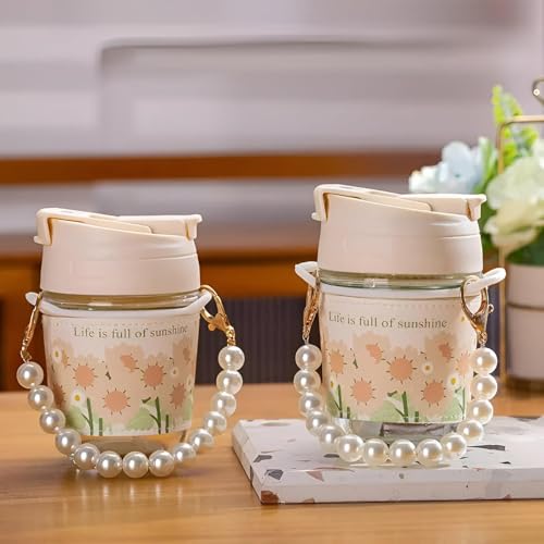 Generic - Stylish Water Bottle - Pearl-Embedded Glass Mug for Coffee and Tea with Chain, Accessory Bracelet, Case, and Straw, Perfect for Trendy Hydration