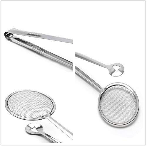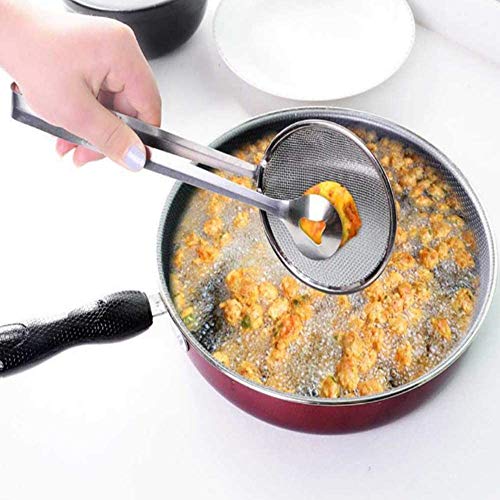 - المزيج المثالي من ملعقة الفلتر الشبكية الدقيقة والمشابك ضروري لمطبخك. رائع لإزالة القلي الصغير من المقلاة العميقة، مثل ناجتس الدجاج أو البطاطس المقلية أو كرات اللحم