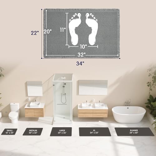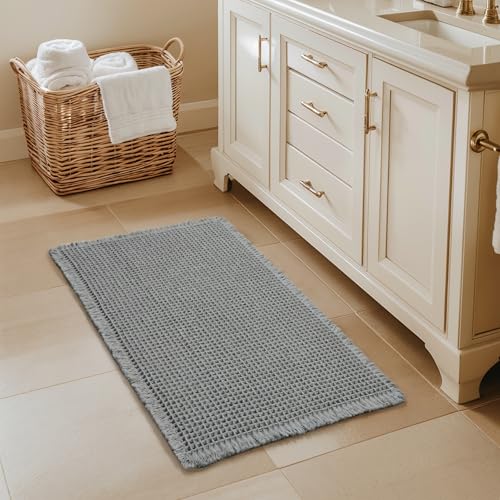 subrtex - سجادة مستطيلة من سابرتكس، مصنوعة من المايكروفايبر والخيوط باللون الرمادي، مخصصة للحمام، بتصميم برايدد. ماصة ومضادة للانزلاق وقابلة للغسل في الغسالة. متوفرة بمقاس 50.8 × 81.28 سم