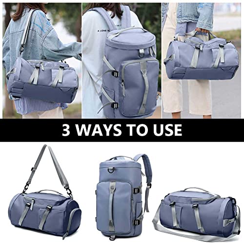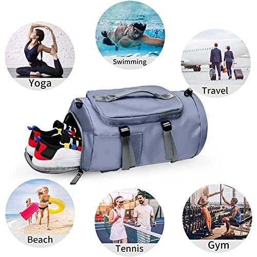 SUCITY - SUCITY Large Capacity Sports Gym Bag for Men, 3-in-1 Sports Bag with Shoes Compartment & Wet Pocket, Sports Duffel Bag for Men & Women, Multi-Occasion Application of Sports Bag (Misty-blue)