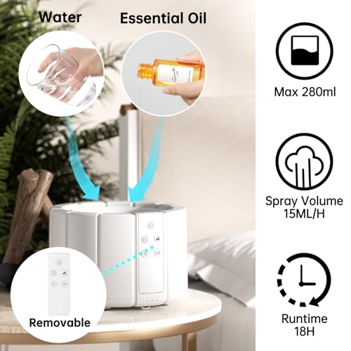 Suewidfay - Essential Oil Diffuser 250ML Humidifier with Remote Control, Aromatherapy Scented Oil Diffusers Timing With Bonfire Shape Warm Light And 7 Colorful Lights For Home Bedroom,White