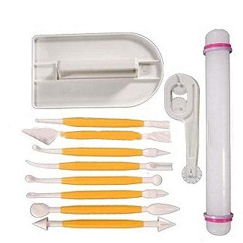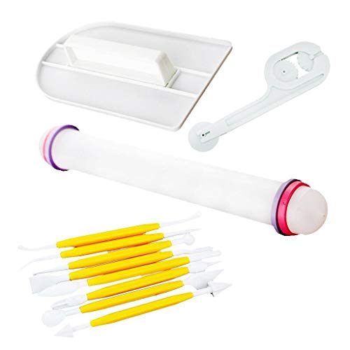 Other - 4 مجموعات مكونة من 11 قطعة تزيين الكيك بالحلوى السكرية مع شوبك لفرد العجين واداة تنعيم مع قطاعة كيك وقلم تزيين وقالب للكيك