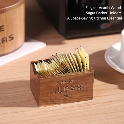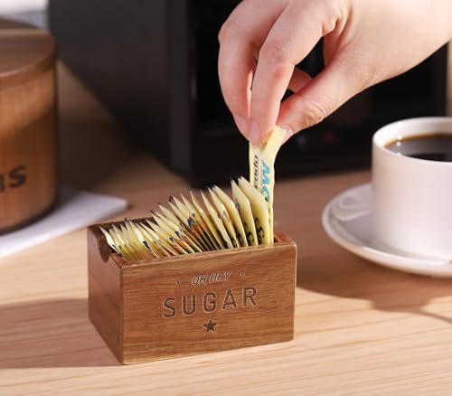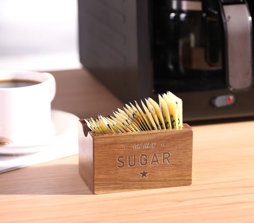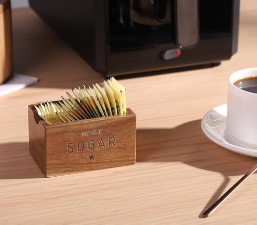 CATORY - Sugar Packet Holder For Coffee Bar, Acacia Wood Sugar Packets Caddy, Farmhouse Sugar Cube Holder, Small Sugar Container Tea Bag Organizer for Table, Office,Hotel, Restaurant