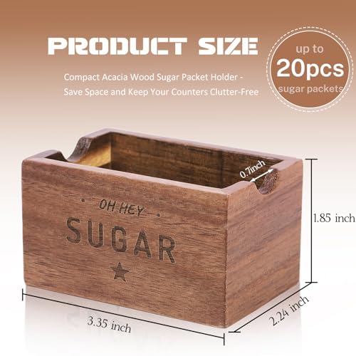 - 【Functional And Compact】With a compact dimension of 3.5 x 2.3 x 2 inches, this wooden tea bag holder can be conveniently placed on the tea or coffee bar, effectively saving space. Despite its small size, small sugar container has the capacity to accommodate up to 20 sugar packets, effectively preventing clutter on the countertop or dining table.