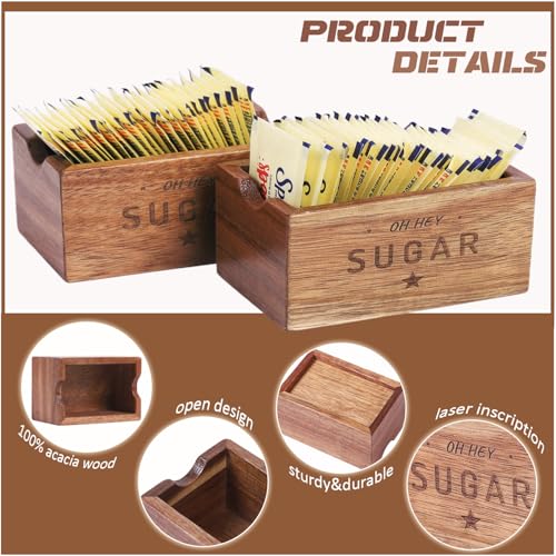 - 【Farmhouse Coffee Bar Decor】The sugar packet holders are crafted from durable acacia wood, featuring a smooth surface and clear texture, making them an indispensable accessory for any coffee bar. Adorned with the charming "Sugar" logo, this sugar holder seamlessly combines style and functionality to neatly organize various types of sugar packets while adding a touch of rustic charm to your cafe.