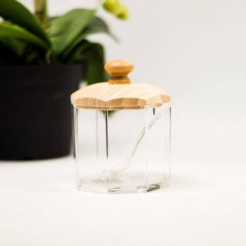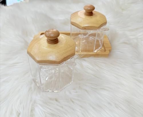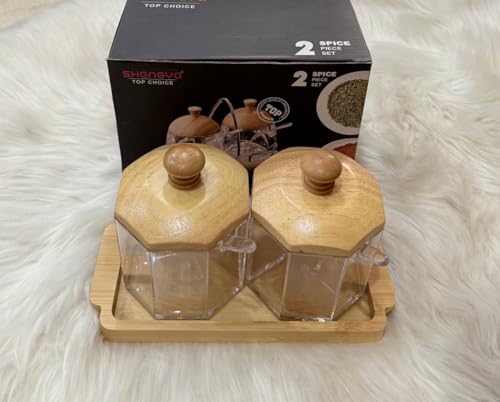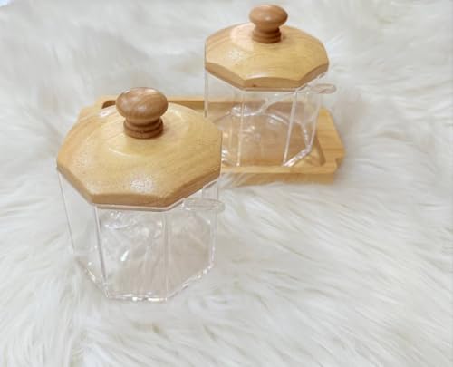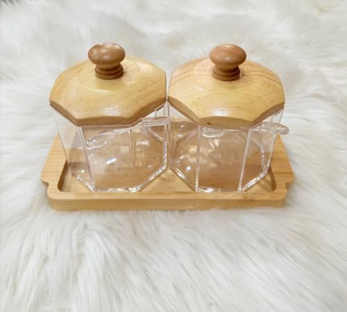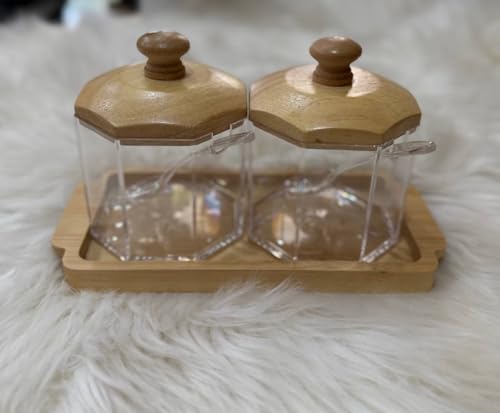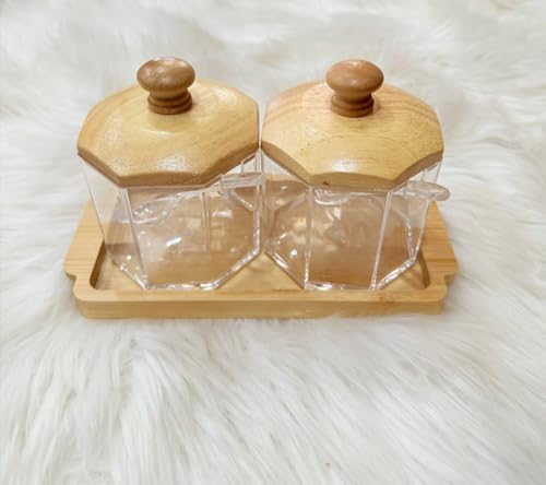 Generic - Sugary Set with Wooden Lid - 2 Acrylic Sugar + 2 Spoons + Elegant Wooden Stand