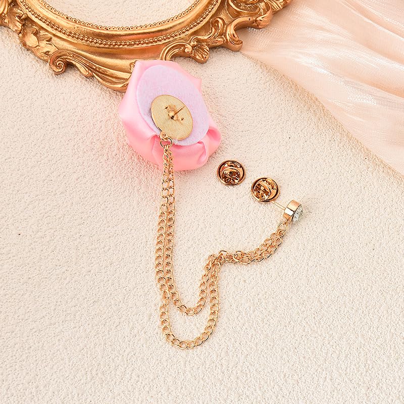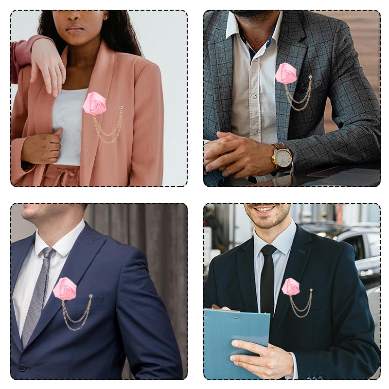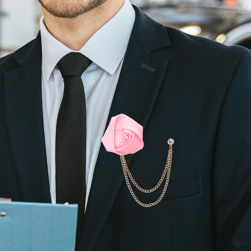 Kilener - دبوس بروش لطية صدر البدلة، بروش على شكل زهرة وردة، بروش زفاف للرجال، بروش سلسلة بشراشيب، دبوس بروش وردي، دبابيس طية صدر على شكل زهرة للرجال، بروش عصري للعريس والزفاف