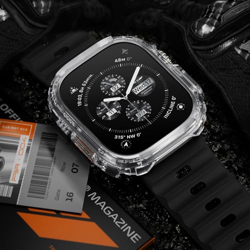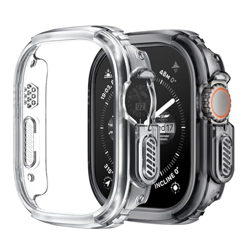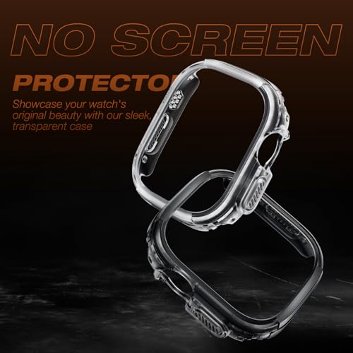 - Dual-Material Frosted Finish: Expertly engineered with high-quality PC and TPU in Crystal Black and Crystal White, this case delivers a unique frosted translucent look that enhances your Apple Watch Ultra’s style while providing superior durability