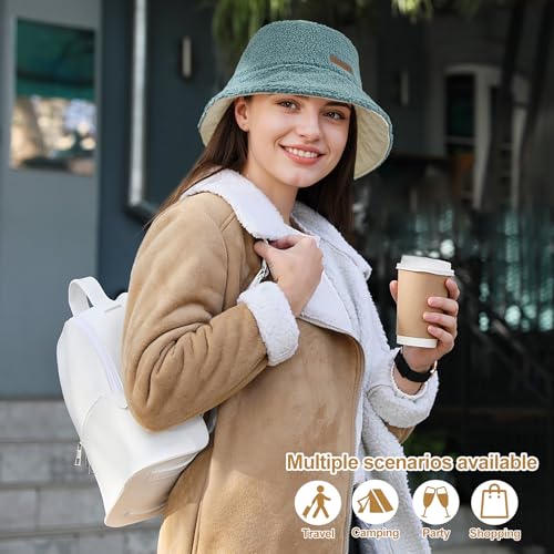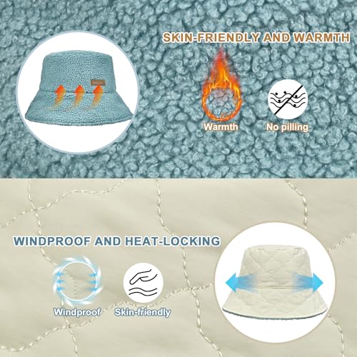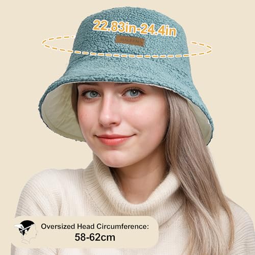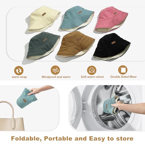 Sukeen - Sukeen Winter Bucket Hat for Women Men Double Side Wear Warm Bucket Hat Faux Fur Bucket Hat Trendy Fisherman Cap for Daily