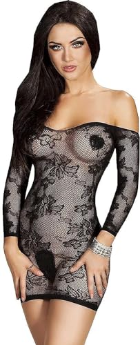 Other - فستان قصير شبكي بدون أكتاف مثير، اسود، للأنثى